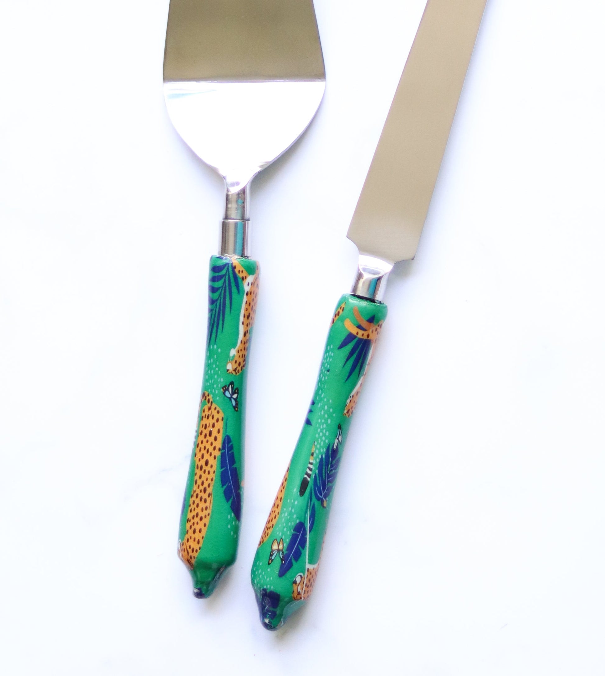 The cake server and knife with their sumptuous enamel print design and beautiful finish will add a touch of class to your hosting. The server adorns any basic dining or buffet event with a great combination of design and function, making it suitable for regular usage or special occasions. This contemporary cutlery item is very easy to use, thanks to its precise proportions and elegant form.